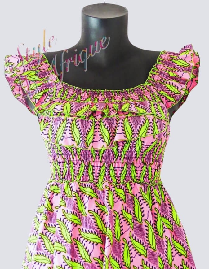 Très Jolie robe évasée imprimée wax taille genoux. Manches bretelles larges, évasée, ce qui permet une meilleure aisance et la possibilité d’enfiler la robe quelque soit la taille. La jolie robe rose à fleurs évasée, extensible, légère et Idéale pour l’été, se porte en toute occasion. Taille disponible : du 36 au 42 Matières : wax Couleur : rose ENTRETIEN : Le tissu WAX se lave à basse température (entre 30 et 40°) . Le nettoyage à la main est à privilégier. Nos tissus sont 100% COTON pour les tissus WAX, KENTE, BOGOLAN. Certains tissus plus communs peuvent être mélangés (polaire, doudou, minky, polyester, lycra; soie, ect…); dans ce cas la composition de l’article mentionnera la présence du tissu dans l’annonce.