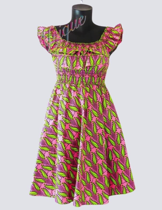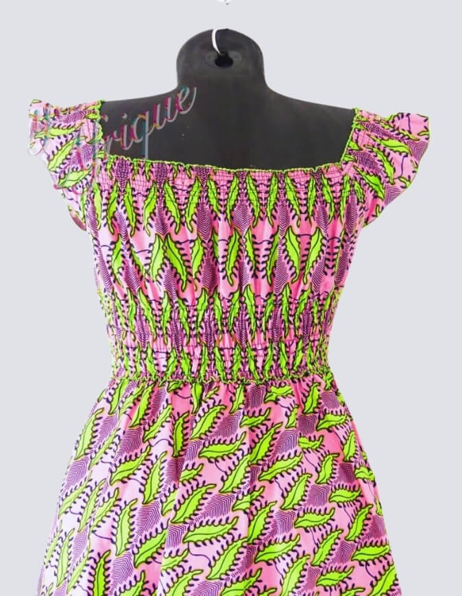 Très Jolie robe évasée imprimée wax taille genoux. Manches bretelles larges, évasée, ce qui permet une meilleure aisance et la possibilité d’enfiler la robe quelque soit la taille. La jolie robe rose à fleurs évasée, extensible, légère et Idéale pour l’été, se porte en toute occasion.