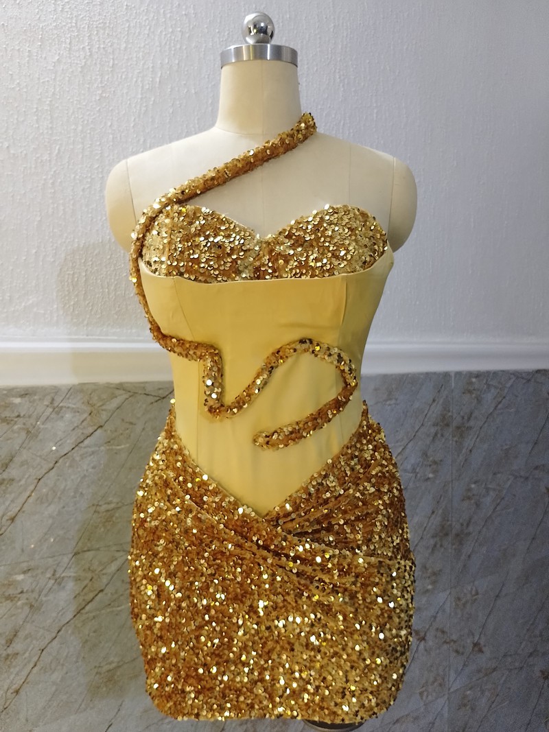 Femme Robes Robes courtes name_fr: Colle Au Corps name_fr: Or name_fr: Pour Elle name_fr: Satin name_fr: Tissu Stretch