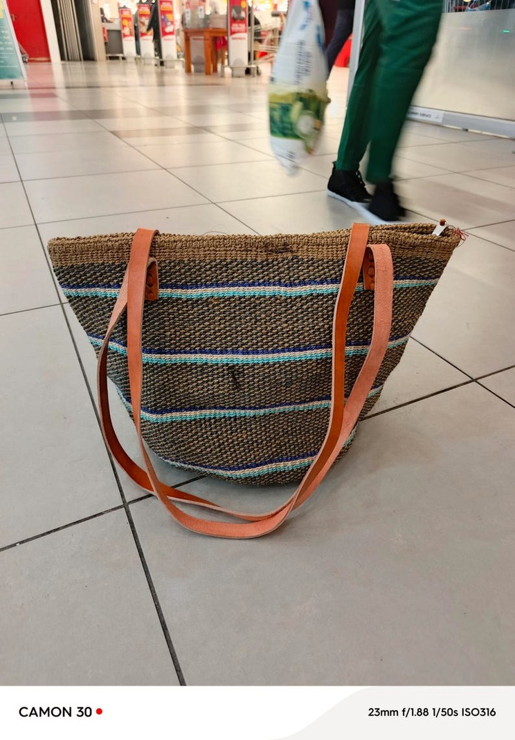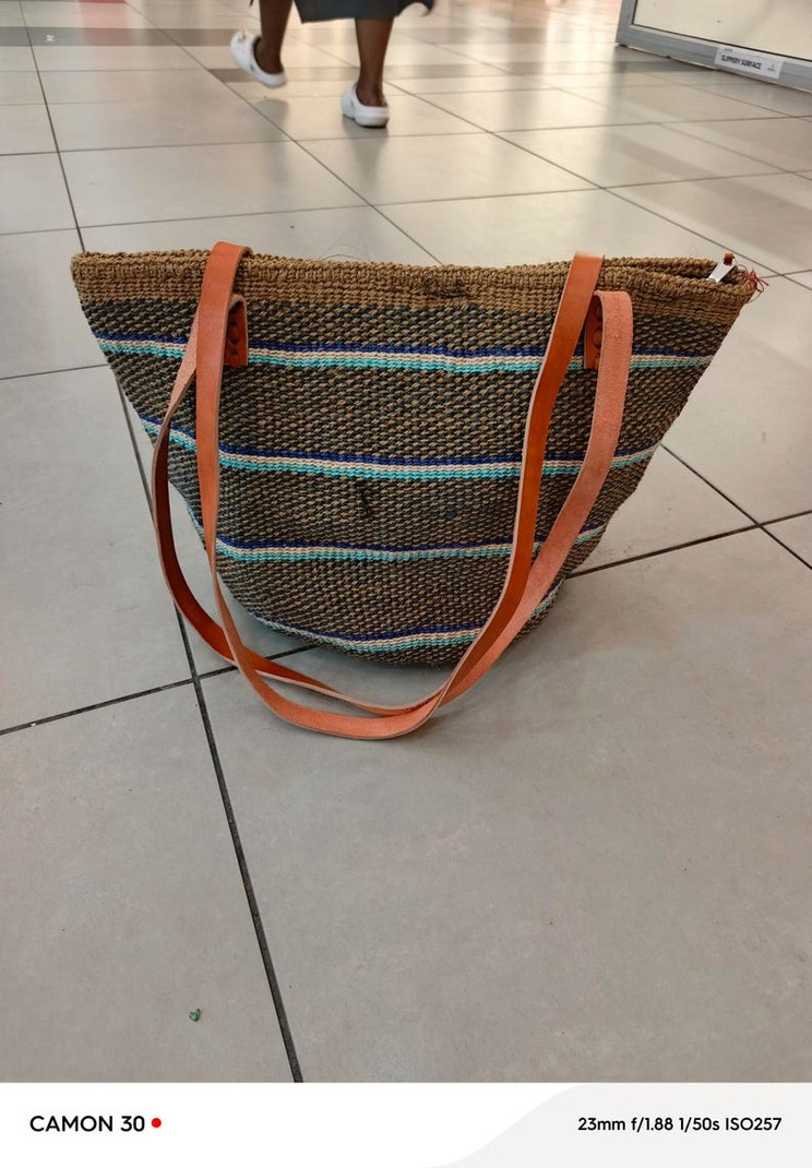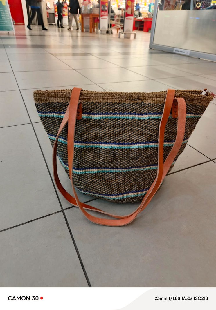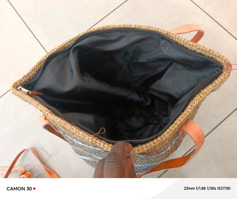 This beautiful handmade Tote bag are woven using colored sisal and leather hands.The woven bag is made from products which are entirely eco-friendly and sustainable, leather to provide comfort and padding. Leathers are naturally tanned from cows and camel.