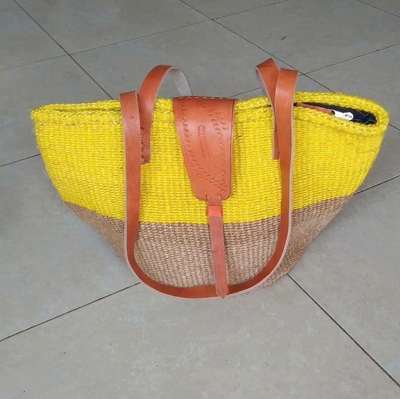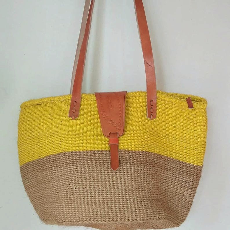 This beautiful handmade Tote bag are woven using colored sisal and leather hands.The woven bag is made from products which are entirely eco-friendly and sustainable, leather to provide comfort and padding. Leathers are naturally tanned from cows and camel.