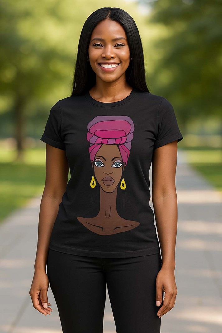 This African print women's t-shirt features a stylish and versatile turban scarf, adding a unique touch to any outfit. Made with high-quality fabric, it offers both comfort and style, perfect for any occasion. Elevate your wardrobe with this eye-catching and cultural piece. Product Features Please Compare your Measurements To our Size Chart This T-shirt is Designed for fashionable women. Made from 5.47 Oz. 100% polyester. Double-needle hemmed sleeves and bottom. Vivid print that will never fade after washing Soft, lightweight and quick drying. Delivery Time This item will be processed within 3-7 business days (Excluding Weekends and Holidays). Once products ships it can take up to 15 Business days depending on your location. Out of Stock items can be requested by emailing us at [email protected] Care Instructions Machine wash cold inside out. Gentle cycle with mild detergent and like colors. Do not use bleach or fabric softener. Do not tumble dry. Hang to dry to ensure maximum shelf life. Iron inside out if necessary. Do not iron the print. Do not dry clean.