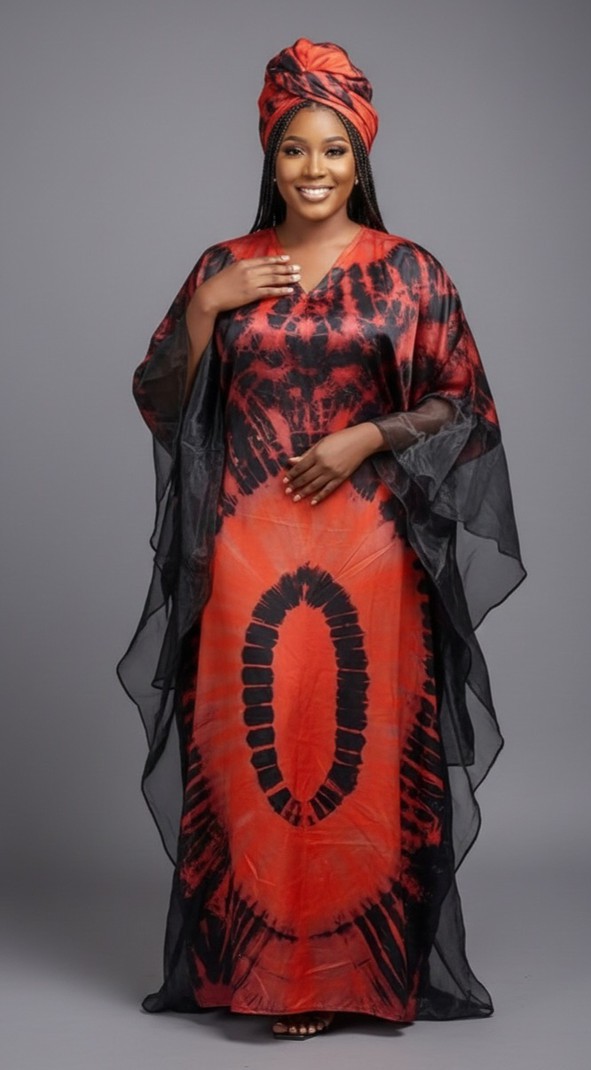 Embrace elegance with our Stunning Blue Tie-Dye Kaftan Dress featuring a captivating design and a graceful sheer overlay. This unique dress showcases a beautiful blend of blue hues, creating a striking tie-dye pattern that’s perfect for making a statement. The V-neckline and flowing silhouette ensure a flattering fit, while the matching headwrap adds an extra touch of sophistication. Ideal for special events or casual gatherings, this kaftan is crafted from lightweight, breathable fabric for all-day comfort. Elevate your wardrobe with this eye-catching piece that celebrates your individuality!