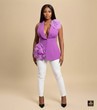 Unleash your inner fashion icon with the Orchid Blossom Structured Suiy and trouser set, an ensemble that redefines power dressing. The focal point is the lilac/purple sleeveless Suit, which boasts a deep, plunging neckline and is intricately adorned with exaggerated, soft rosette appliqués on the shoulder and hip. The structure of the suit is brilliantly complemented by crisp, high-waist white trousers, creating a look that is equally artistic, feminine, and commanding. perfect for gallery openings, high-fashion luncheons, or making a bold statement at any cocktail reception.