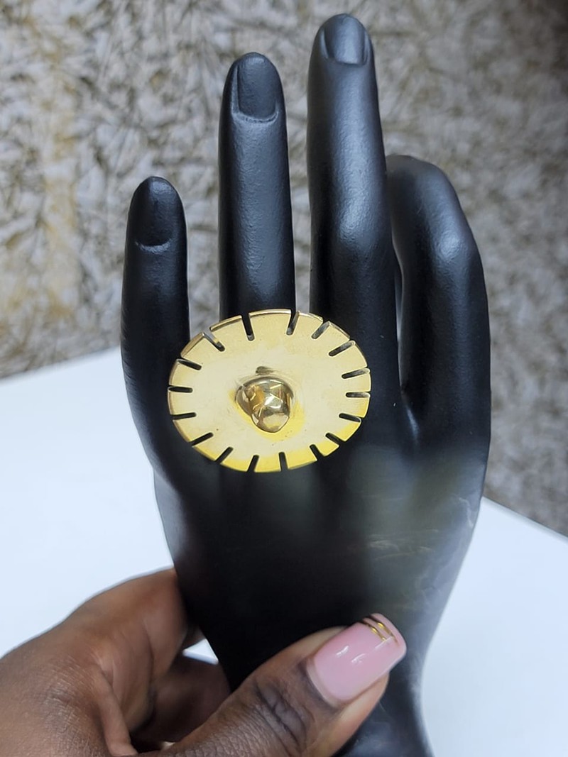 Radiate Elegance with Our Sunburst Ring! Make a bold statement with this stunning gold-tone ring, featuring a unique sunburst design with a central gem accent. Perfect for adding a touch of glamor to any outfit, this eye-catching piece is a must-have. Shop now