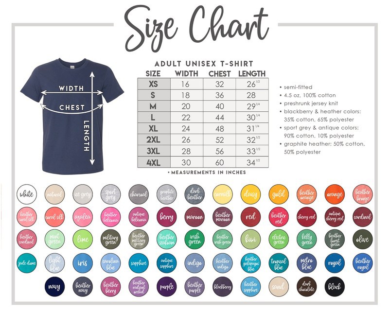 Ce t-shirt personnalisé est un excellent t-shirt qui complète n'importe quelle tenue. Il est fait de coton plus épais et l'encolure et les manches à double couture lui confèrent plus de durabilité, de sorte qu'il peut devenir un favori de tous les jours. Matière : 100% coton ring-spun Poids : 4.5 oz/y² (153 g/m²) Pré-rétréci pour plus de durabilité Bande épaule à épaule Quart de tour pour éviter les plis au centre Produit du Bangladesh, du Honduras, d'Haïti, du Mexique ou du Nicaragua. Imprimé dans l'UE ou aux États-Unis. Ce produit est fabriqué sur commande. Conseils d'entretien : lavage en machine à l'eau froide, à l'envers, cycle délicat avec un détergent doux et des couleurs similaires. N'utilisez pas d'eau de Javel ou d'adoucissant. Ne pas sécher en machine. Suspendre pour sécher pour assurer une durée de conservation maximale. Repassez à l'envers si nécessaire. Ne repassez pas l'imprimé. Ne pas nettoyer à sec. Tailles : S UK8 US4 EU36 UK10 US6 EU38 M UK12 US8 EU40 UK14 US10 EU42 L UK16 US12 EU44 UK18 US14 EU46 XL UK20 US16 EU48 UK22 US18 EU50 XXL UK24 US20 EU52 UK26 US22 EU54 Tailles 3XL, 4XL et 5XL disponibles. Personnalisation et autres couleurs possibles. Contactez-nous.