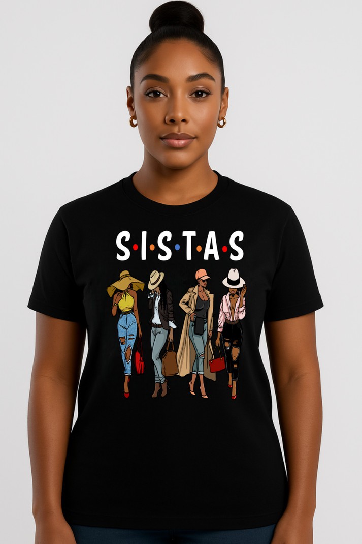 Celebrate sisterhood in style with this vibrant "SISTAS" t-shirt.