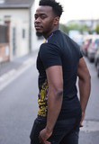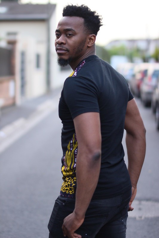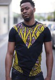 T-shirt en coton et en wax (tissu Africain). Existe aussi en blanc.
