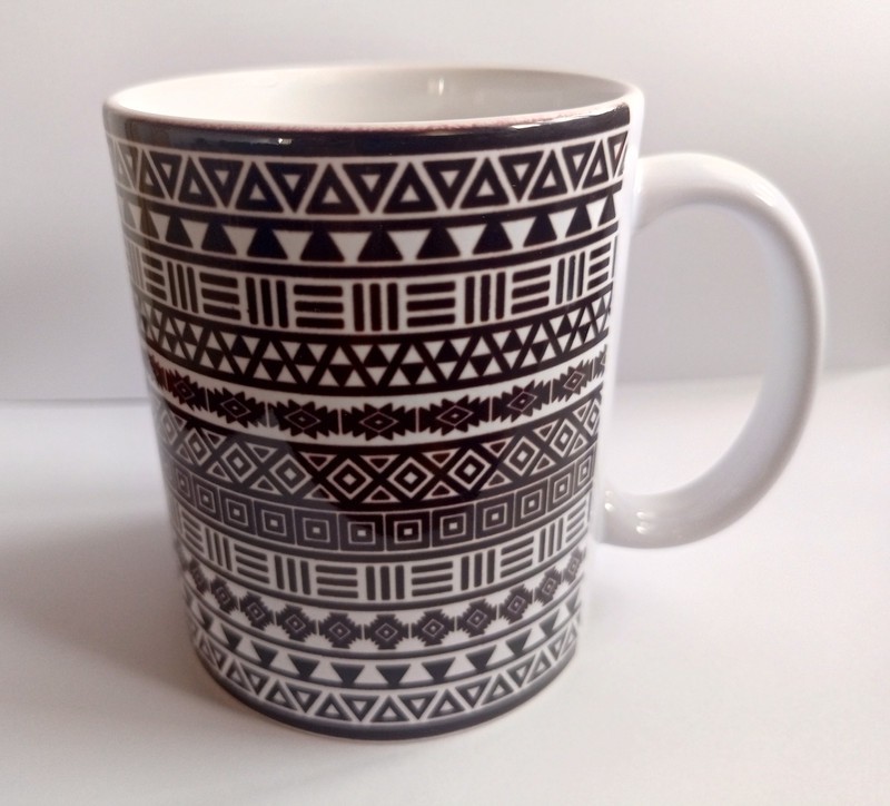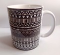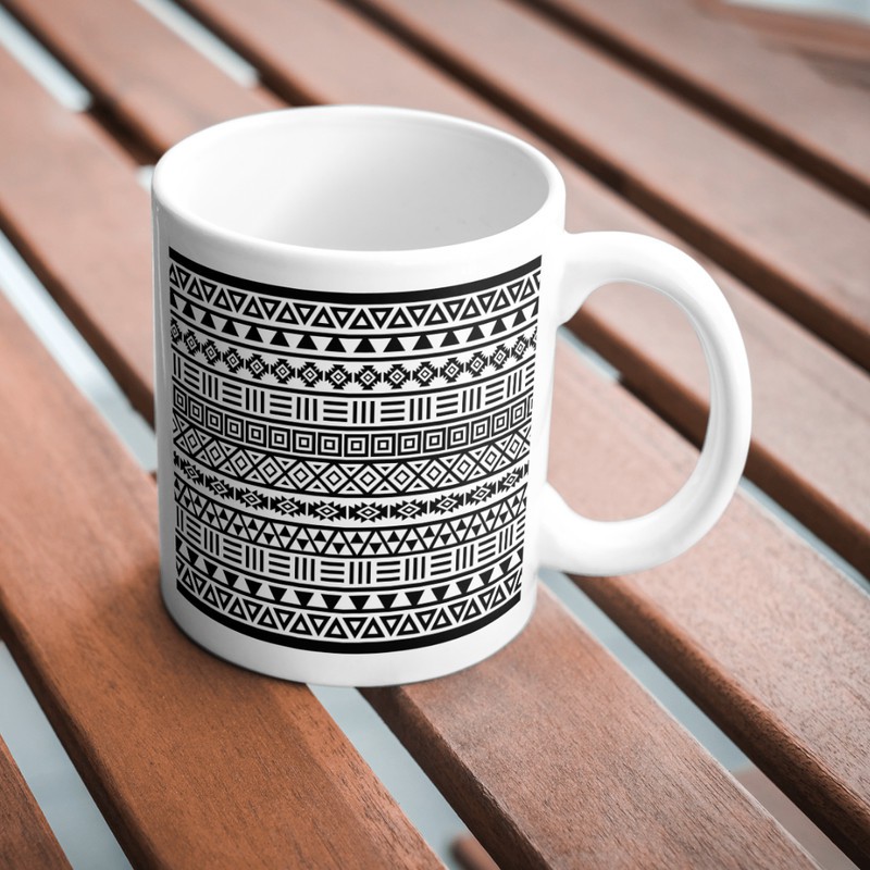 Design : Superposition de motifs ethniques noirs sur fond blanc