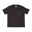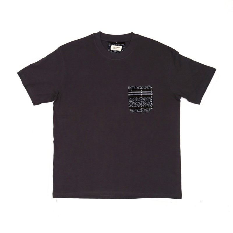 Tee-shirt gris anthracite moderne, agrémenté d'une poche en wax Mstari aux motifs géométriques. Fait main, ce modèle en coton premium est à la fois urbain et ethnique, parfait pour les amateurs de style hybride.