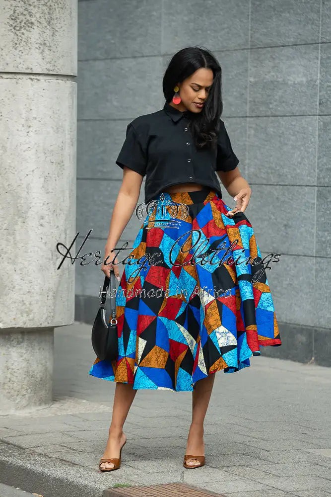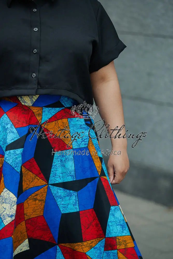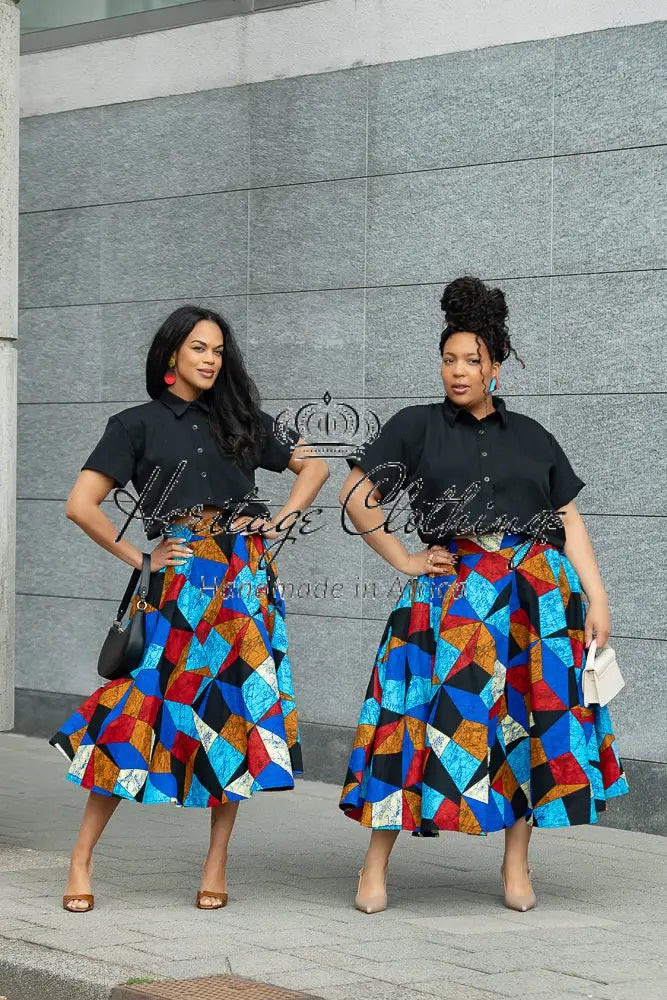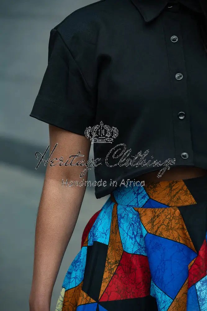 Gorgeous don't just walk in, show off! This Two-piece set skirt and black cropped shirt top with matching detailing will give you that head dropping gaze! It is a bright and beautiful fabric which is fit for any occasion.