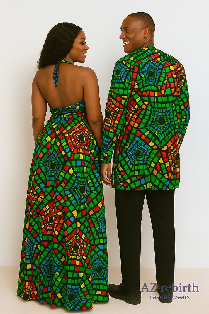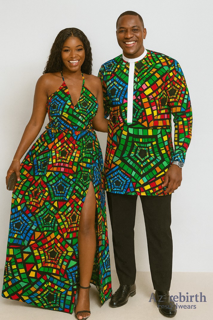 Step out in harmony with this stunning matching Ankara set for couples.