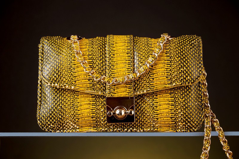 Make a bold statement with this yellow fish skin-textured handbag. Crafted for confidence and fashion forward women, this bag features an eye-catching yellow hue paired with a striking fish skin pattern that radiates uniqueness and luxury. the structured silhouette is enhanced with high-quality gold-tone hardware and a secure turn-lock closure, making it as functional and fashionable. Details High quality leather Classic design with modern appeal Durable and hardware stitching