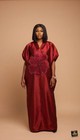 Minimalist yet majestic, this ruby red boubou is the definition of effortless luxury. Crafted from a fabric with a high-gloss sheen, it catches the light beautifully. The garment is defined by a massive, intricate floral embroidery appliquéd on the chest in matching red tones with beaded detailing. The loose, airy fit ensures maximum comfort and modesty. Best ForChurch services, mature family gatherings, or formal dinners where comfort is key. Material: Mikado Silk Color: red