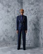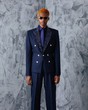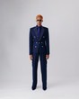 A Navy blue Sequin peak lapel collared suit with beaded Swarovski detailing