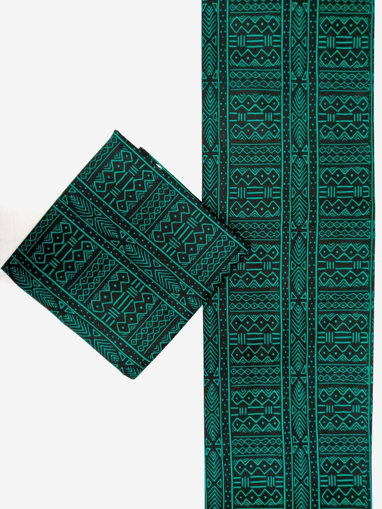 Make a bold statement with this 6-Yard Premium Cotton Fabric in rich black and emerald green, featuring traditional-inspired geometric prints that speak of strength, heritage, and unapologetic style.