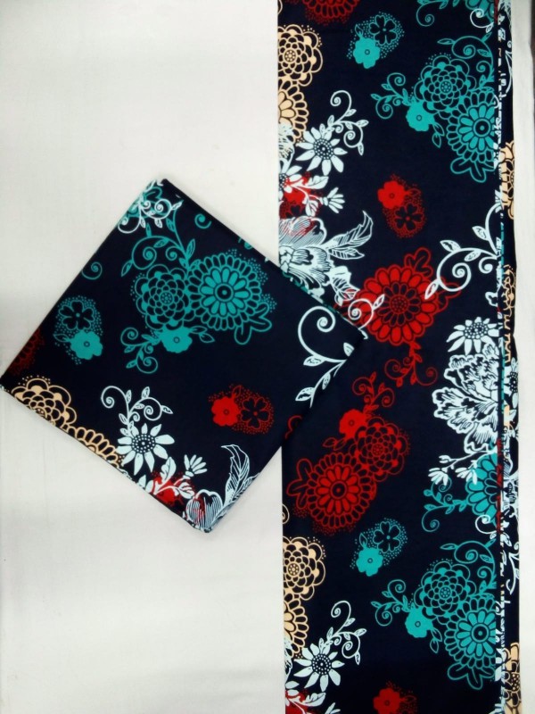 Wrap yourself in sophistication with this 6-yard floral print cotton fabric—where bold meets graceful. The deep navy background sets the stage for rich red, teal, ivory, and gold blossoms that whisper femininity and power. Whether you’re crafting a timeless dress, a classy kimono, or chic accessories, this fabric brings your vision to life with flair.