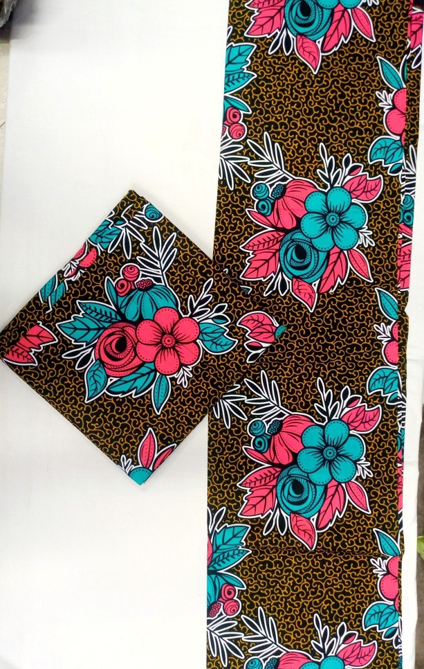Bright, bold, and irresistibly stylish! This 6-yard 100% cotton fabric features a vibrant floral pattern that bursts with personality. The print combines turquoise blue and hot pink flowers outlined in white, beautifully contrasted against a warm mustard-brown background with intricate swirling patterns. 📦 Bulk orders available while stocks last!