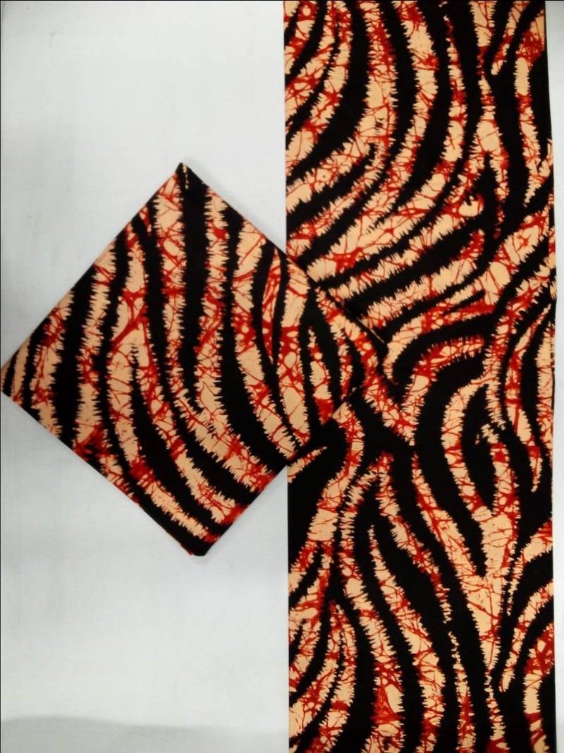 Bold, untamed, and unapologetically stylish. This striking print blends fierce black zebra stripes with vibrant orange crackle detailing on a warm beige base—creating a dramatic pattern full of movement and attitude.