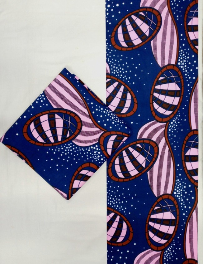 This vibrant Navy Blue & Pink Oval Motif Ankara features bold pink striped shapes framed in warm brown tones, set against a deep blue background sprinkled with white dotted accents that create a lively, dynamic effect. Printed on high-quality 100% cotton, it offers a smooth, breathable feel and excellent structure, making it perfect for stylish dresses, skirts, tops, two-piece sets, and accessories. Its playful yet elegant design stands out effortlessly, making it an ideal choice for creators who love colourful, expressive African prints that turn every outfit into a statement.