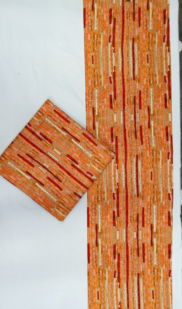 This warm and vibrant Orange, Red & Cream Linear Texture Ankara features a beautifully layered pattern of vertical brush strokes, dotted accents, and stripe variations, creating a rich, textured design full of depth and movement. Printed on premium 100% cotton, it offers a soft, breathable feel with excellent sewing structure—perfect for dresses, skirts, shirts, kaftans, two-piece sets, headwraps, and accessories. Its glowing blend of orange tones, subtle creams, and bold red highlights makes this fabric ideal for creators who love bright, earthy African prints that bring energy, warmth, and effortless elegance to every outfit.