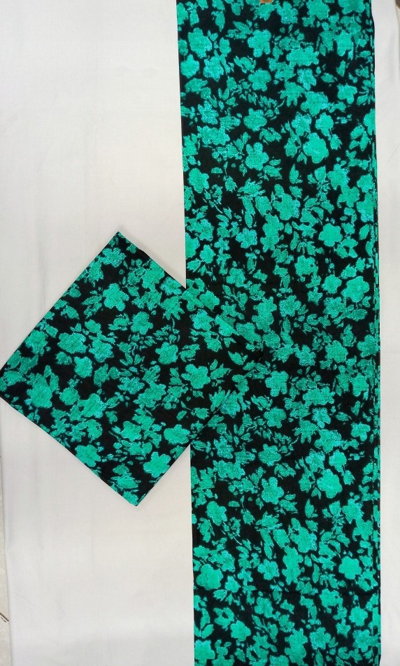 This elegant printed cotton showcases a lush scatter of bright teal florals against a deep black background, creating a rich, garden-inspired look that’s both fresh and sophisticated. Its soft, breathable texture makes it ideal for dresses, tops, skirts, headwraps, and décor pieces that need a touch of effortless beauty. Whether you’re crafting everyday wear or standout ensembles, this fabric delivers a vibrant floral charm that elevates any design.