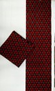 This African print fabric features a rich red and black palette with small, repeating floral-inspired motifs arranged in a tight geometric pattern, creating a bold yet refined look perfect for elegant outfits or statement accessories.