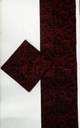 This rich red-and-black print offers a bold, dramatic look with its intricate, swirling patterns that create depth and movement across the fabric. The deep tones blend seamlessly to form an elegant, textured design that stands out beautifully, making it perfect for statement outfits, accessories, or décor projects that call for a touch of sophistication and flair.