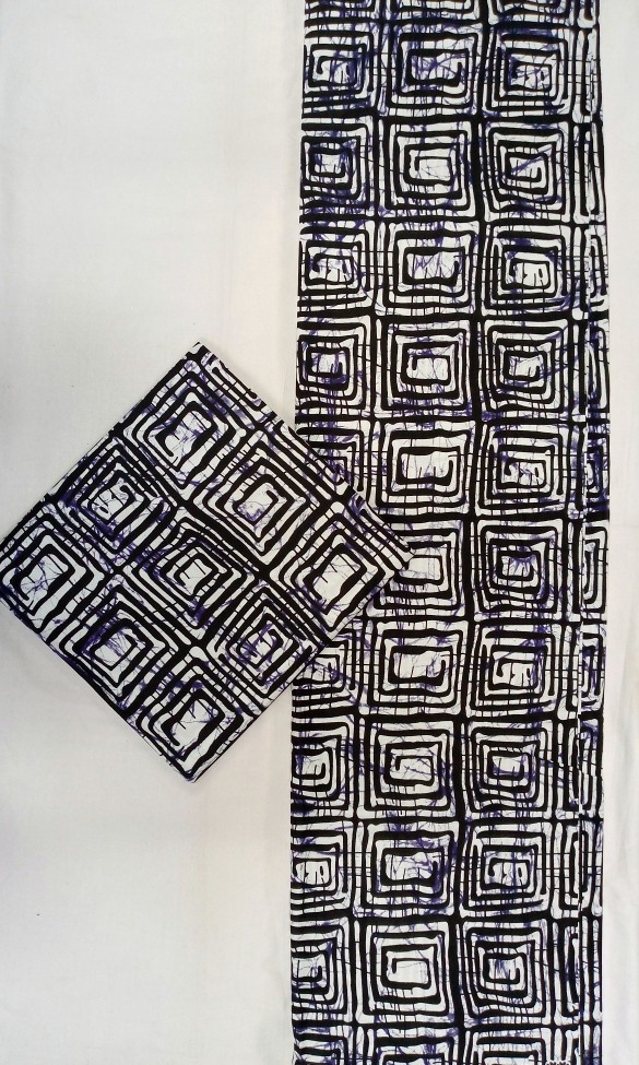 This fabric features a striking hand-drawn square motif in deep purple and black, creating a bold geometric look with artistic, imperfect lines that add character and depth. The repeated spiral-square design gives it a modern, abstract feel while still maintaining an organic, handcrafted charm. Set against a light background, the pattern stands out beautifully, making this fabric ideal for statement outfits, creative projects, or unique décor pieces. 📦 Bulk orders available while stocks last!