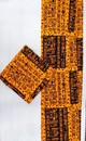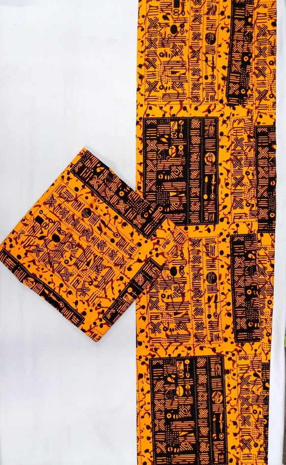 This vibrant fabric showcases a striking blend of bold orange and deep black arranged in an intricate, tribal-inspired pattern that immediately commands attention. The design features repeating geometric motifs, abstract symbols, and artistic linework that come together to create a rich, cultural aesthetic full of character and rhythm. Its warm, energetic palette makes it perfect for statement outfits, creative tailoring, or standout accessories, offering a look that feels both traditional and refreshingly modern. 📦 Bulk orders available while stocks last!