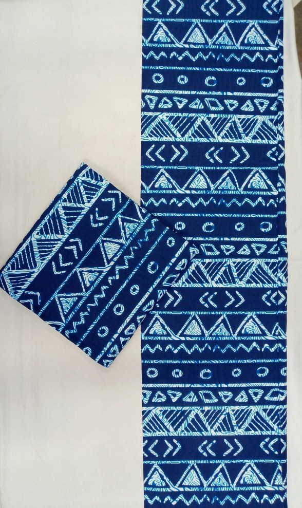 This indigo-blue cotton fabric features a striking arrangement of hand-drawn geometric motifs, creating a bold yet refined look. The repeating triangular and linear patterns bring out a rhythmic, tribal-inspired aesthetic that stands out beautifully against the rich blue base. Soft, breathable, and easy to tailor, it's a versatile choice for dresses, shirts, skirts, or creative craft projects that call for a distinctive artistic flair. 📦 Bulk orders available while stocks last!