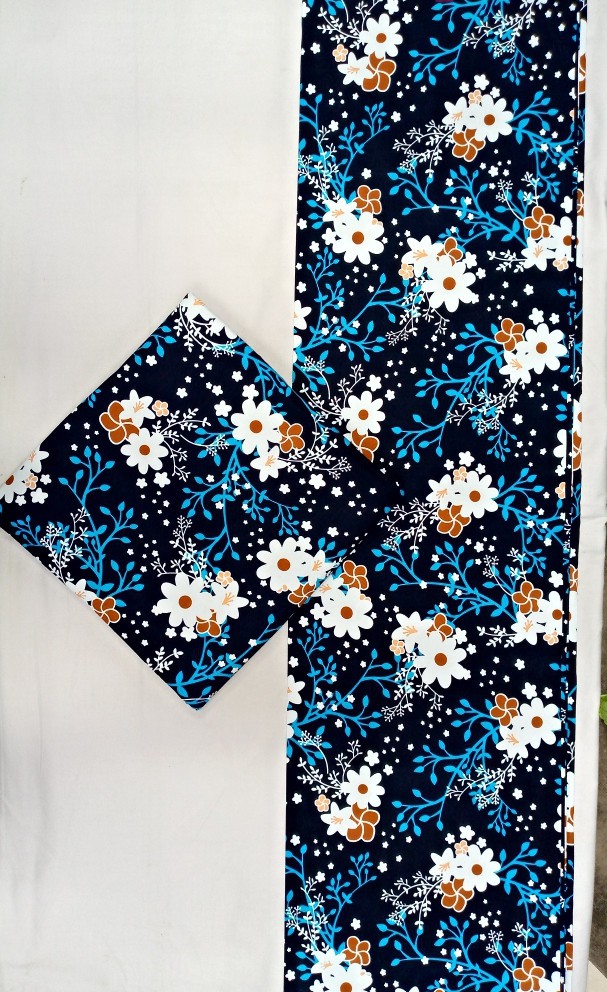 Brighten your wardrobe with this elegant navy blue floral print, featuring crisp white blossoms accented by touches of caramel and vivid turquoise branches. Crafted from soft, breathable cotton, this fabric offers the perfect balance of comfort and style—ideal for dresses, tops, skirts, and statement pieces that bring a fresh, feminine charm to any look. 📦 Bulk orders available while stocks last!