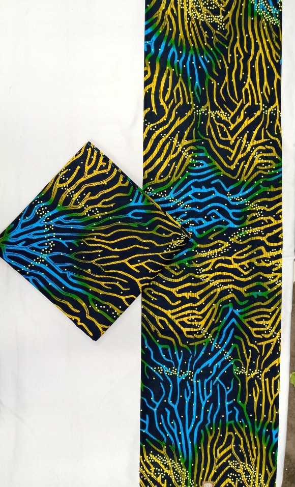 Energize your wardrobe with this vibrant multicoloured African print, featuring electric waves of yellow, blue, and green set against a deep navy base for a bold, dynamic finish. Perfect for dresses, shirts, skirts, or statement accessories, this breathable cotton fabric delivers striking style and effortless comfort in every stitch.