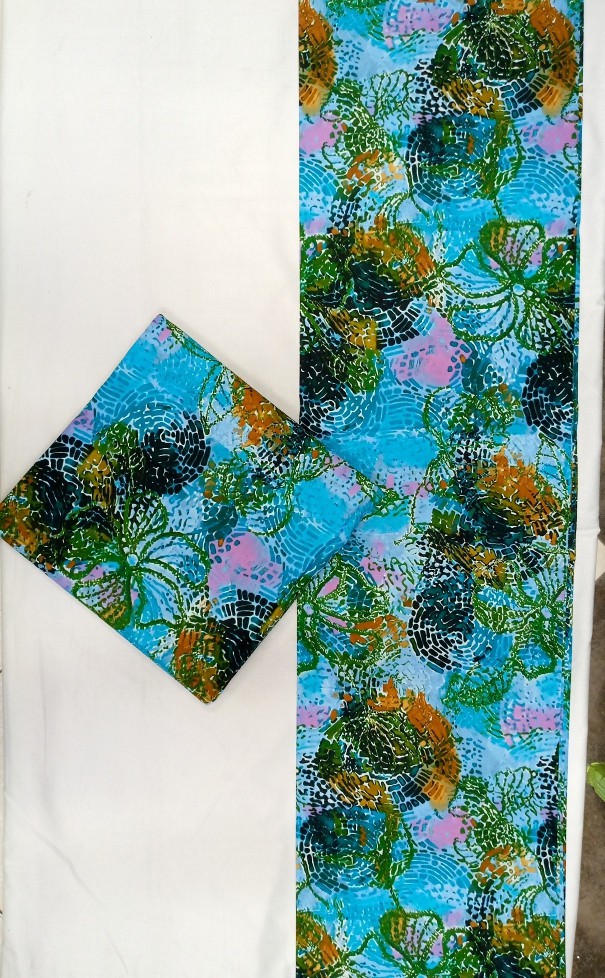 This vibrant cotton fabric features an artistic blend of turquoise, green, brown, and soft pink tones, forming an abstract floral-meets-mosaic pattern that feels both organic and modern. Its rich color play and fluid design make it perfect for statement outfits, accessories, and creative sewing projects, offering a bold yet elegant look for any style. 📦 Bulk orders available while stocks last!