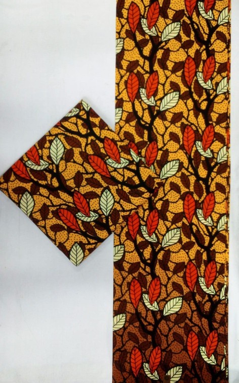 This vibrant African print fabric features an autumn-inspired motif of bold red, cream, and brown leaves set against a warm golden background, creating a rich, organic texture reminiscent of a sunlit forest canopy. The intricate branching pattern adds depth and movement, making it an elegant choice for dresses, skirts, shirts, home décor accents, and bespoke creations. Soft, durable, and eye-catching, this fabric is perfect for anyone looking to infuse their style with earthy luxury and timeless cultural charm.