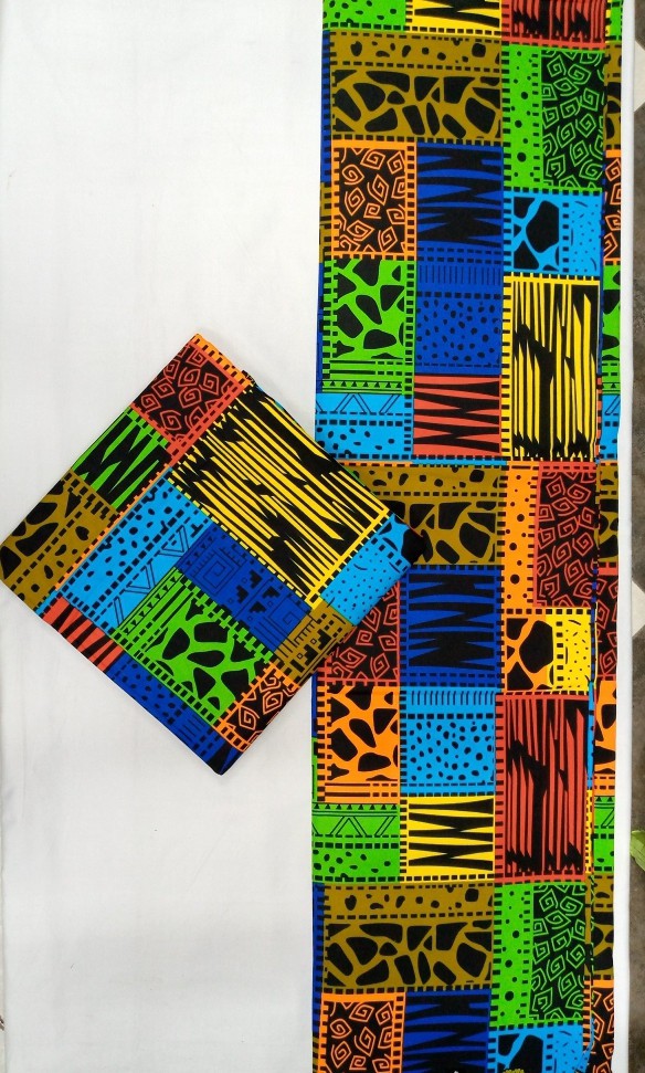 A vibrant patchwork of saturated blocks—blue, green, yellow, orange, red—each filled with lively geometric and tribal-inspired motifs. High-energy, joyful, and eye-catching, this fabric instantly brightens any look. 📦 Bulk orders available while stocks last!