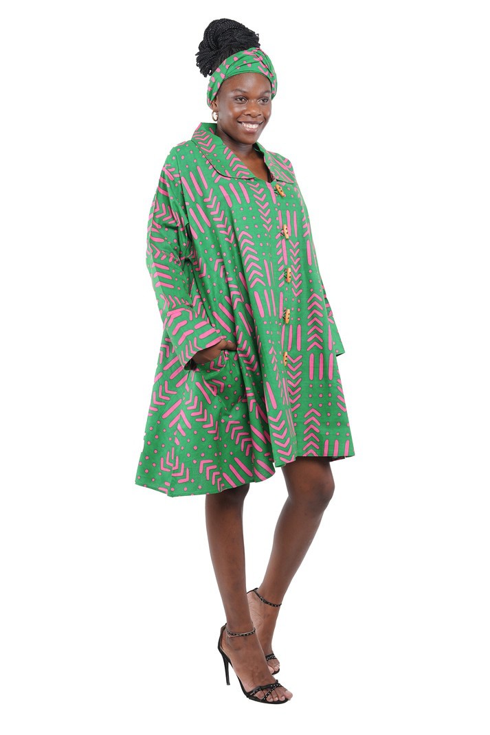 Upgrade your wardrobe with our stylish Toggle Button Ladies Dress! Made from 100% cotton fabric, this midi/short dress features 2 convenient pockets and comes with a matching head wrap. Crafted from a soft, breathable fabric, this dress offers a flattering fit while providing ultimate comfort. The standout feature is the unique toggle button detailing, which adds a modern twist to a timeless design. Go for comfort, convenience, and style all in one dress. One Size Two Convenient Pockets Matching Head Wrap 100% Cotton Fabric