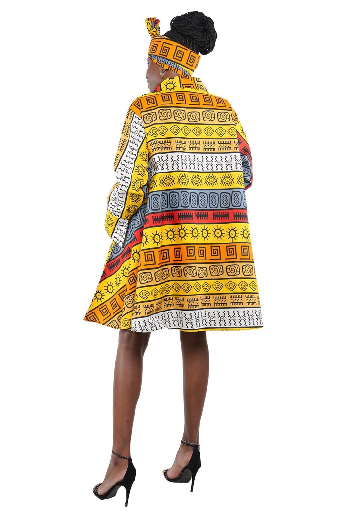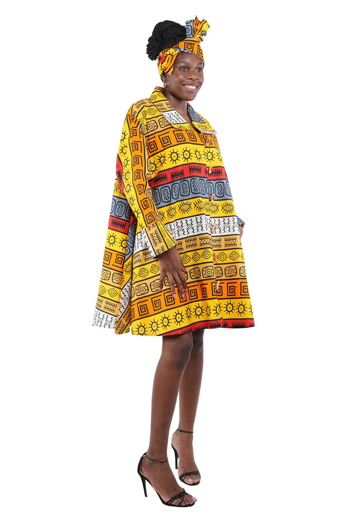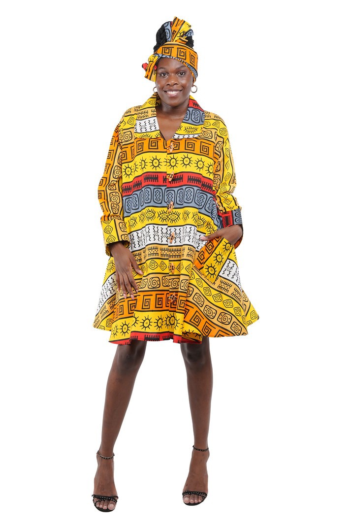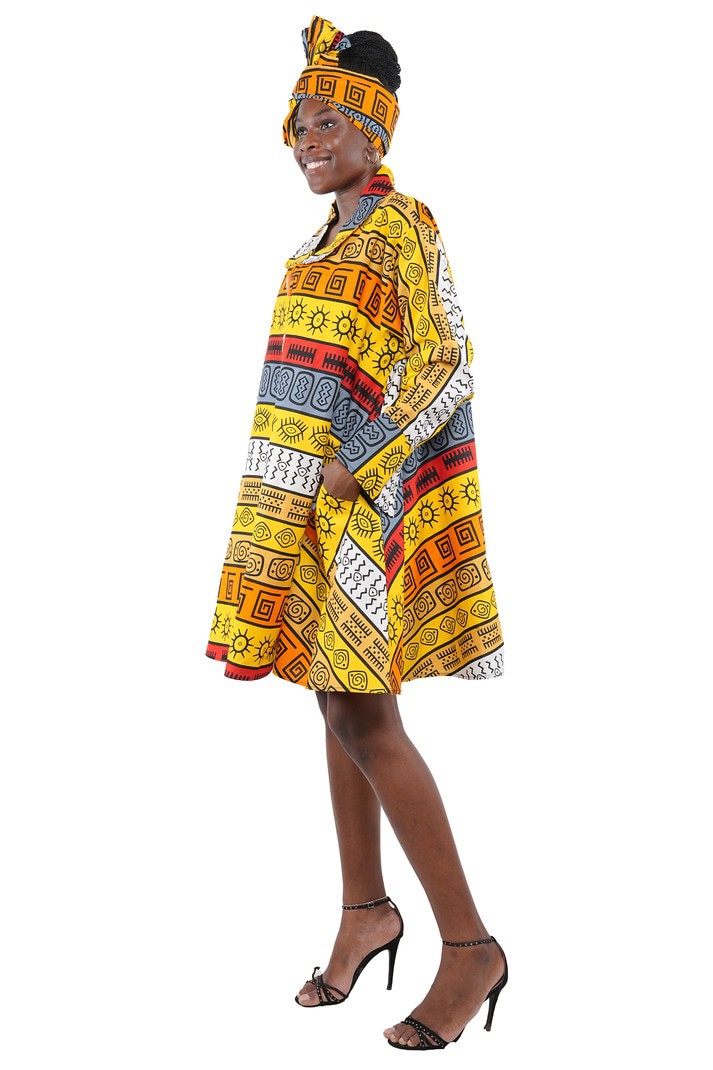 Upgrade your wardrobe with our stylish Toggle Button Ladies Dress! Made from 100% cotton fabric, this midi/short dress features 2 convenient pockets and comes with a matching head wrap. Crafted from a soft, breathable fabric, this dress offers a flattering fit while providing ultimate comfort. The standout feature is the unique toggle button detailing, which adds a modern twist to a timeless design.Go for comfort, convenience, and style all in one dress.