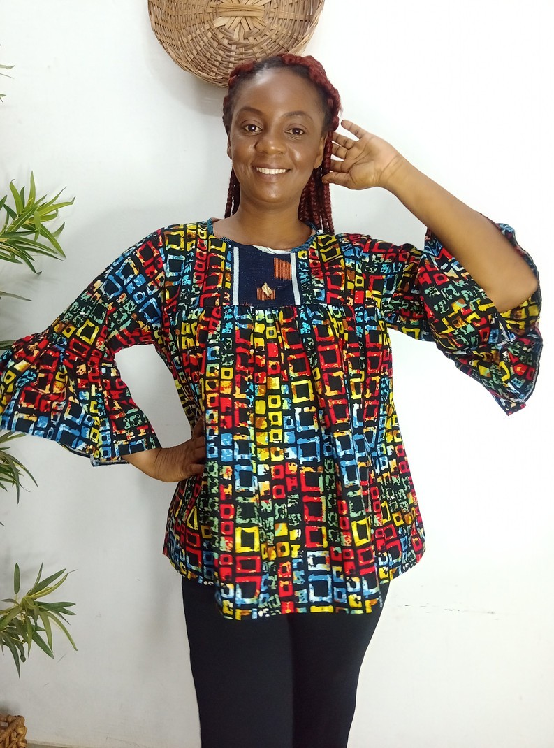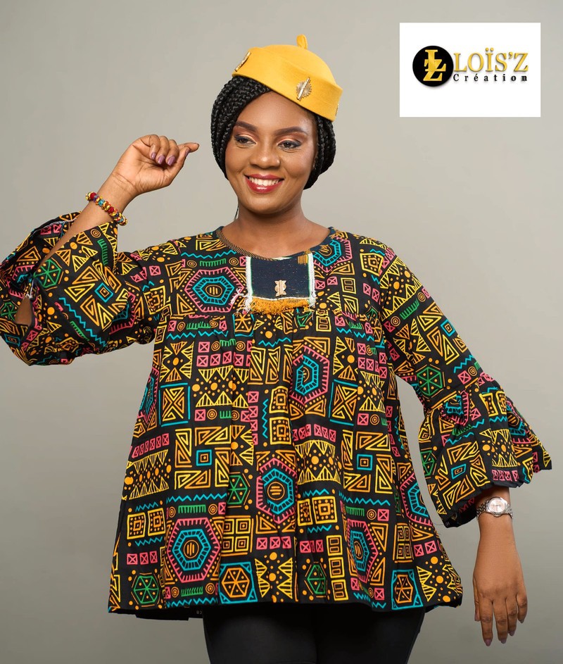 🌺 Plongez dans l'exotisme avec notre dernier ajout : le somptueux top wax Julia, une fusion de motifs vibrants et de tradition Baoulé. Ornements en perles Baoulé et détails en pagne tissé Baoulé ajoutent une touche d'élégance culturelle.