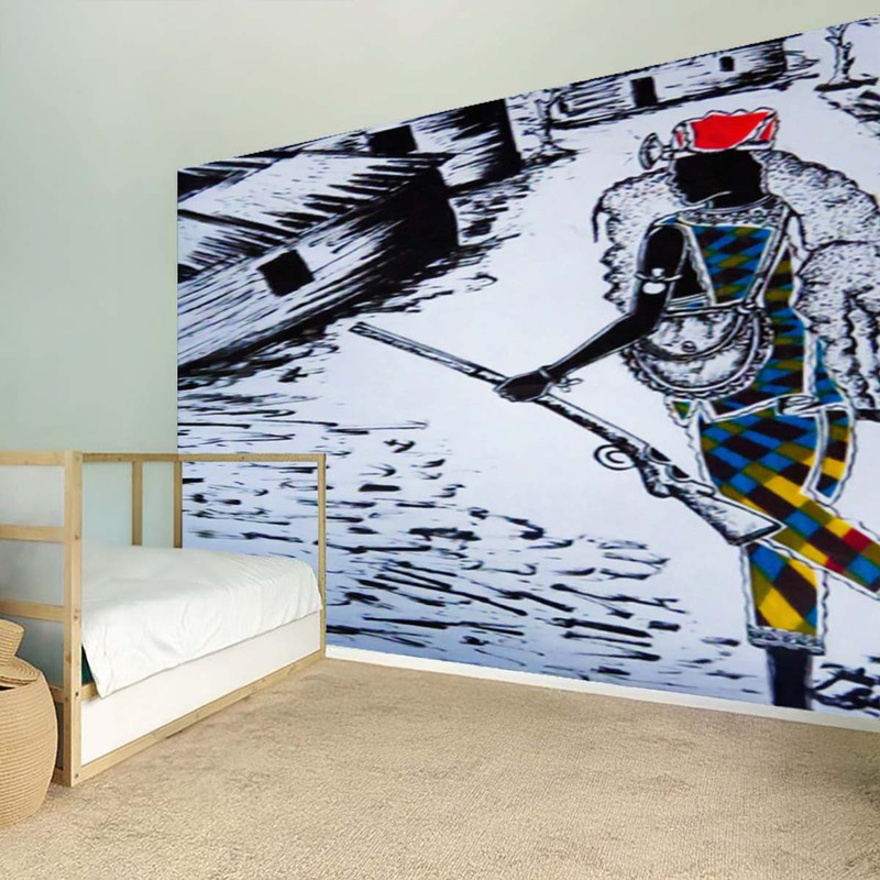 Add a touch of adventure to your walls with this Traditional African Wall Art Sticker featuring a fearless Native Hunter in action. A bold and inspiring addition to any space, this sticker captures the spirit of risk-taking and challenges. Make a statement and embrace the thrill of the unknown! Product Description = Package includes 1 one wall sticker = Sticker size: 487x236cm(192"x93") = Made of PVC = Decorative single-side print Delivery Time This item will be processed within 3-7 business days (Excluding Weekends and Holidays). Once products ships it can take up to 15 Business days depending on your location. Out of Stock items can be requested by emailing us at [email protected]