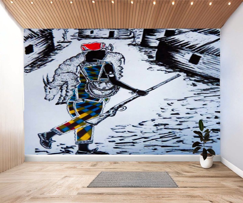 Add a touch of adventure to your walls with this Traditional African Wall Art Sticker featuring a fearless Native Hunter in action. A bold and inspiring addition to any space, this sticker captures the spirit of risk-taking and challenges. Make a statement and embrace the thrill of the unknown!