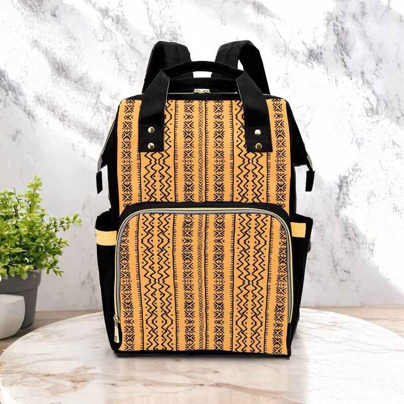 Take on any adventure with our Traditional Mali Print Afro Backpack! Featuring a stunning Native design and versatile functionality, this backpack doubles as a stylish diaper bag. Embrace your bold and daring side with this must-have accessory for any daring explorer. Product Description * Made from high-grade nylon, lightweight yet sturdy. * Wide open design, large interior with 1 zippered pocket and 4 elastic pockets. * One front section with 3 elastic pockets and 1 net pocket for milk bottles and other items. * Padded back panel and adjustable shoulder straps for ultra comfort and stability. * Unisex design makes the diaper bag a nice choice for both mom and dad. Delivery Time This item will be processed within 3-7 business days (Excluding Weekends and Holidays). Once products ships it can take up to 15 Business days depending on your location. Out of Stock items can be requested by emailing us at [email protected] Care Instructions Machine wash cold inside out. Gentle cycle with mild detergent and like colors. Do not use bleach or fabric softener. Do not tumble dry. Hang to dry to ensure maximum shelf life. Iron inside out if necessary. Do not iron the print. Do not dry clean.