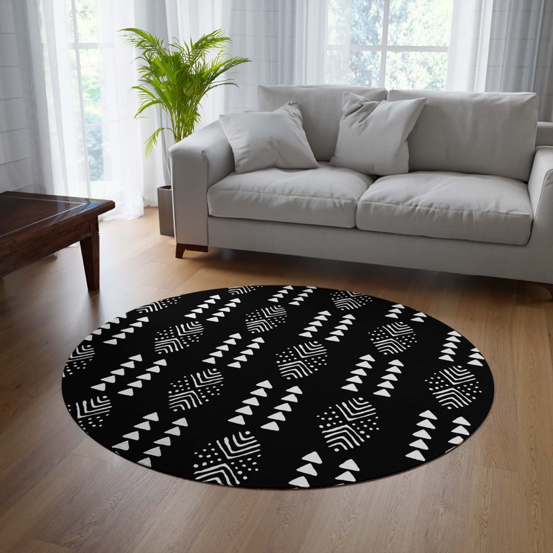 Enhance your living space with the bold and daring Traditional Round Rugs. These black and white vibrant carpets add a touch of adventure to any room. Made with traditional designs, these rugs provide both style and functionality. Elevate your home decor with a risk-taking attitude!