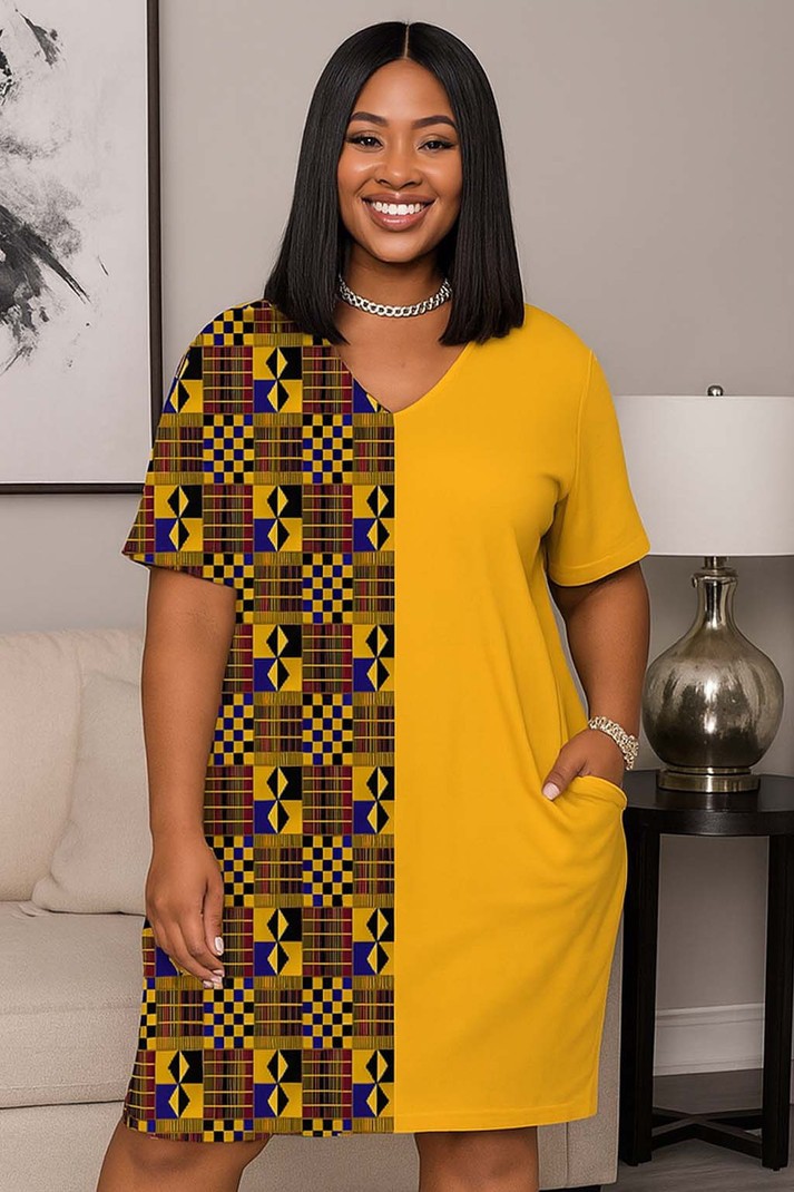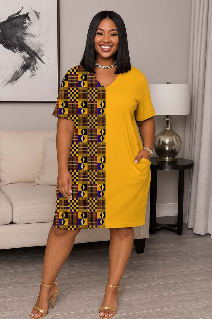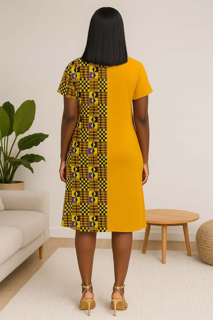 This stylish African short dress features a vibrant mixed Kente print that celebrates rich cultural heritage with a modern twist. Designed with convenient pockets, it combines fashion and functionality effortlessly. Perfect for warm days or festive occasions, this dress offers a comfortable fit while making a bold statement. Elevate your wardrobe with a piece that blends tradition and trend seamlessly. Product Features Please Compare your Measurements To our Size Chart Before Purchase V shirt Neckline Short Sleeve Fabric:95% polyester and 5% spandex Regular - Loose fit Fit: Straight cut with mid-thigh to above-knee length Fabric Weight: 180g/m² Delivery Time This item will be processed within 3-7 business days (Excluding Weekends and Holidays). Once products ships it can take up to 12 Business days depending on your location. A tracking code/link will be emailed to you once your order has been processed and shipped Accurate address and delivery information is required to ensure timely shipping and delivery. We are unable to redirect orders once they have shipped. Out of Stock items can be requested by emailing us at [email protected] Care Instructions Machine wash cold inside out. Gentle cycle with mild detergent and like colors. Do not use bleach or fabric softener. Do not tumble dry. Hang to dry to ensure maximum shelf life. Iron inside out if necessary. Do not dry clean.