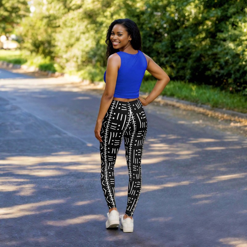 Slay the fashion game with these Tribal Leggings in African Mud Cloth print! Perfect for adding a unique touch to your outfit while staying comfortable. These black and white leggings are sure to turn heads with their exotic patterns. Dare to be bold and embrace your wild side! Product Features Please Compare your Measurements To our Size Chart before purchase • Fabric is 82% polyester, 18% spandex • Four-way stretch • Elastic waistband • Precision-cut and hand-sewn • Fabric weight: 6.61 oz/yd² (224 g/m²) • 38-40 UPF • Overlock and coverstitch • Printed, cut, and hand-sewn by our in-house team • Four-way stretch, which means fabric stretches and recovers both on the cross and lengthwise grains • Made of a microfiber yarn, which is smooth and comfortable Delivery Time This item will be processed within 3-7 business days (Excluding Weekends and Holidays). Once products ships it can take up to 15 Business days depending on your location. Out of Stock items can be requested by emailing us at [email protected] Care Instructions Machine wash cold inside out. Gentle cycle with mild detergent and like colors. Do not use bleach or fabric softener. Do not tumble dry. Hang to dry to ensure maximum shelf life. Iron inside out if necessary. Do not iron the print. Do not dry clean.