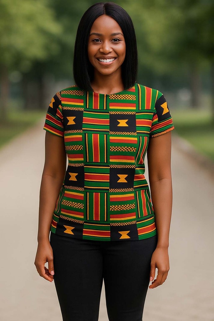 Celebrate your roots with our Tribal Print Afrocentric Tee Shirt for Women. This Heritage Top combines vibrant tribal patterns with comfortable fabric, making it perfect for expressing cultural pride every day. Its unique design not only stands out but also connects you to a rich heritage, empowering your style with meaning and authenticity. Ideal for casual wear or special occasions, this tee offers both comfort and a bold statement. Embrace your identity and showcase your story with this distinctive, eye-catching top.