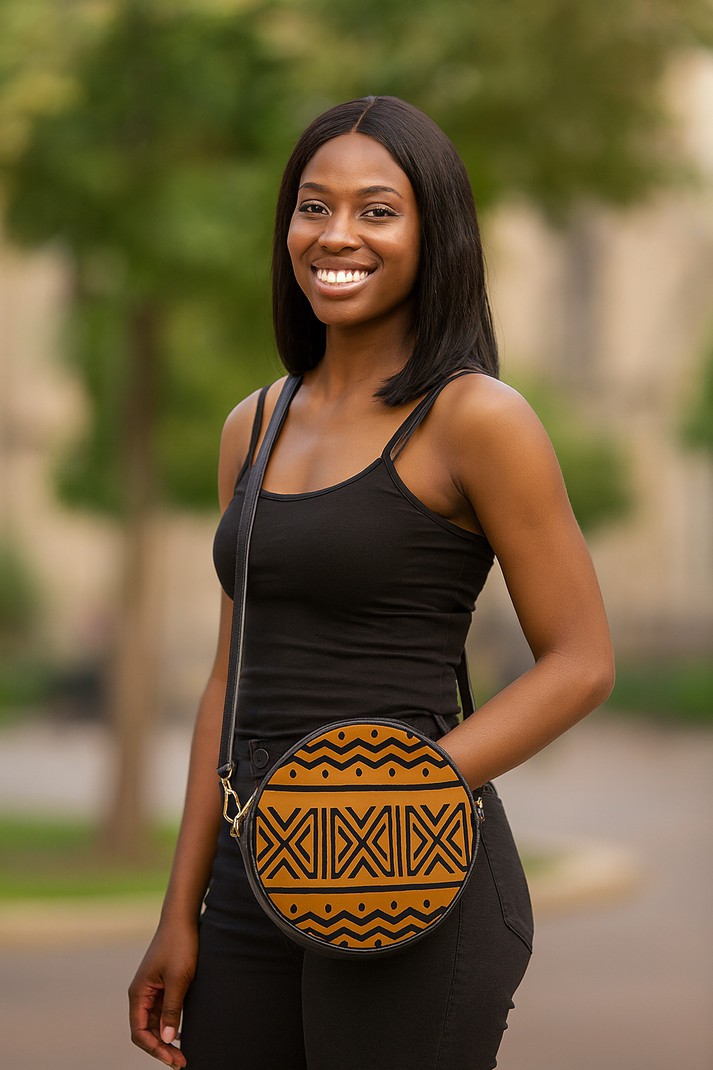 This Tribal Print Crossbody Bag boasts an African-inspired round sling style, perfect for adding a touch of culture to your look. With vibrant tribal prints, it's sure to make a statement. Stay organized on the go with its convenient crossbody design. Elevate your style with this unique bag!