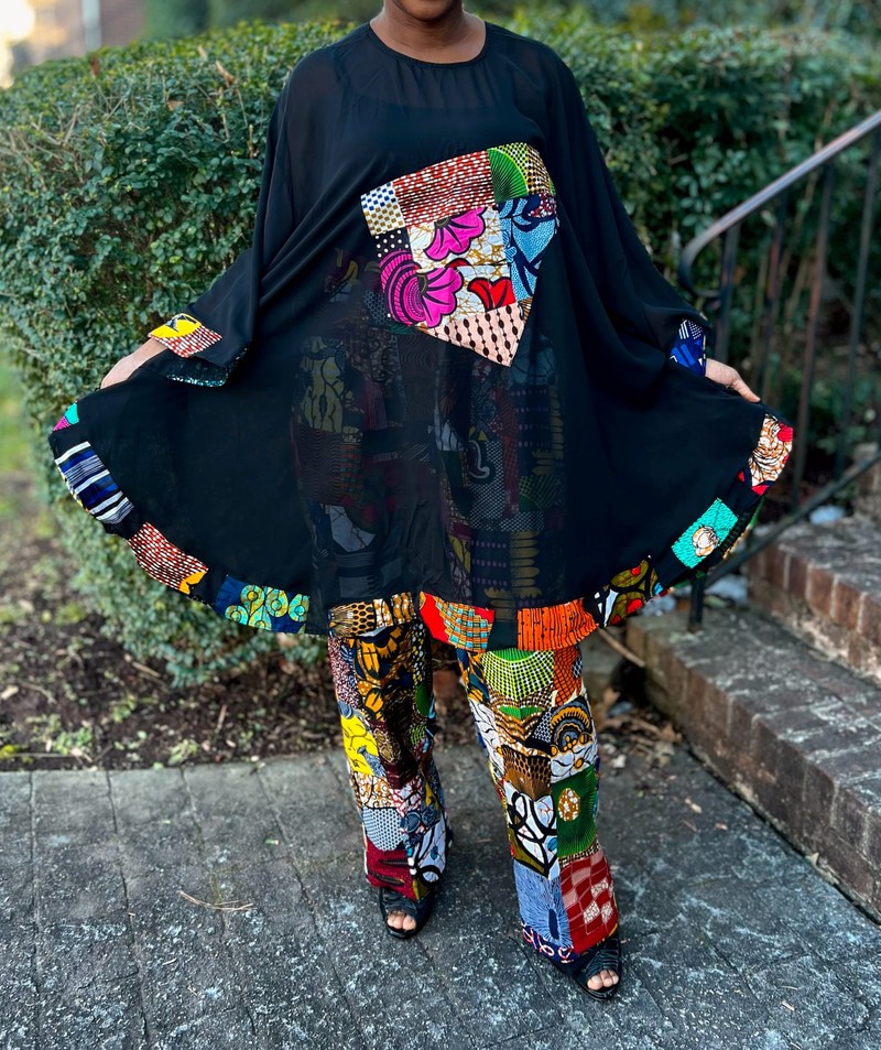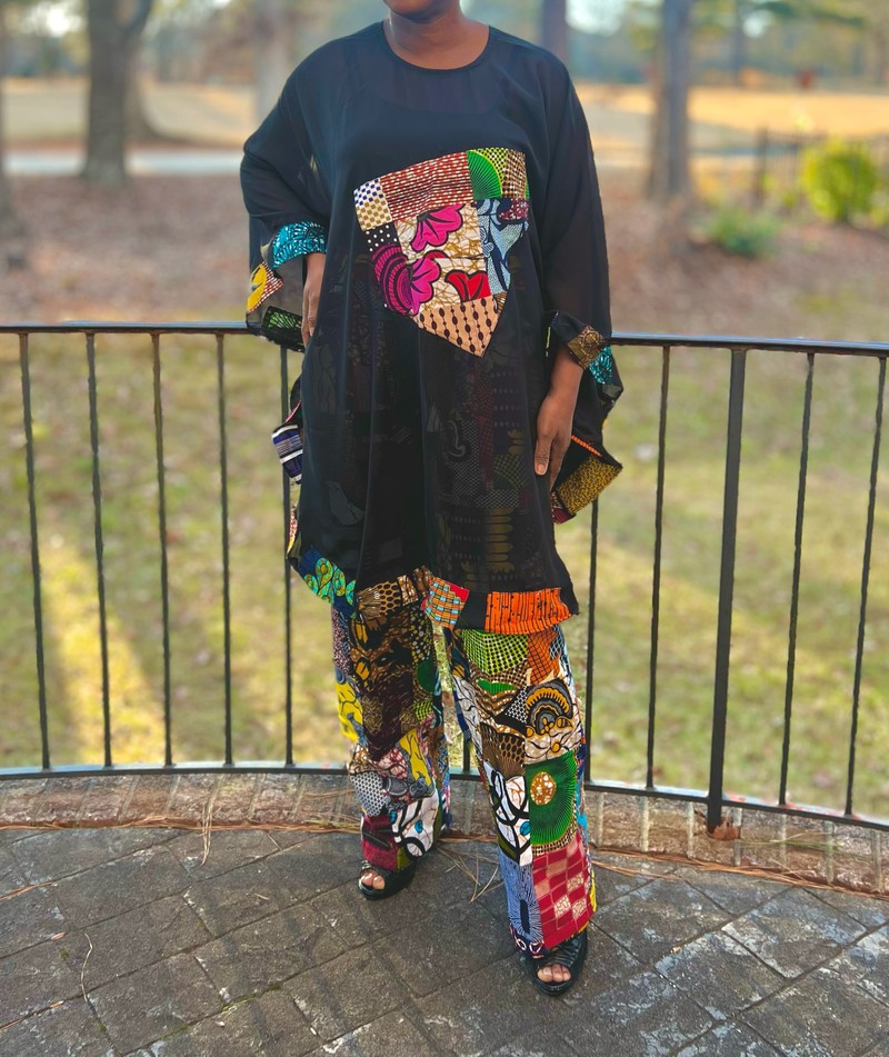 African Print Ankara Tribal Print Maxi Cardigan and Matching Pant Set