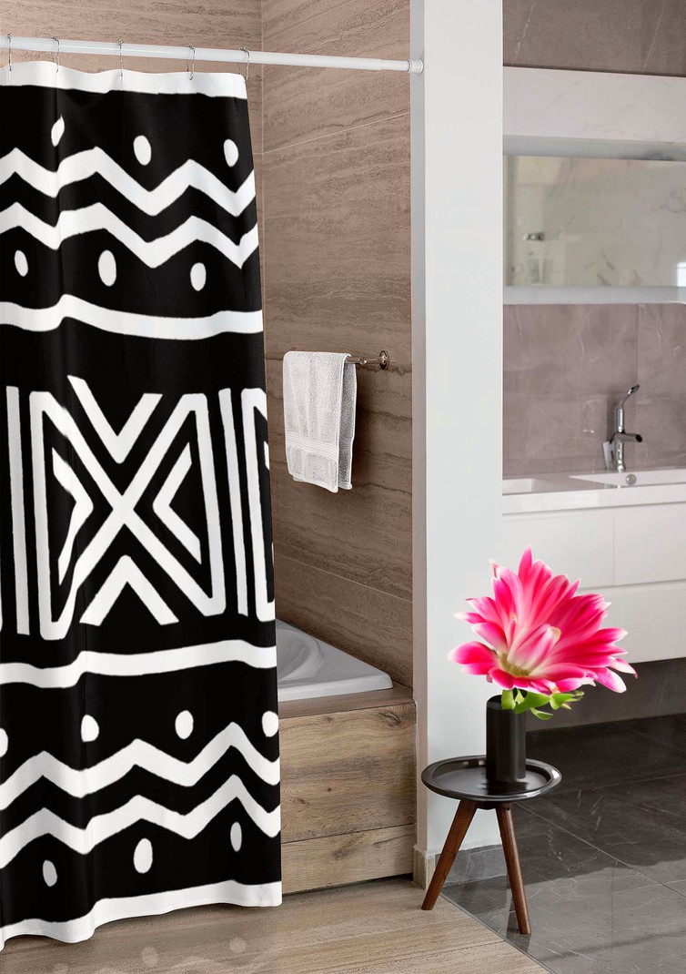 Unleash your adventurous side with this bold Tribal Shower Curtain. Featuring a striking black and white African design, this curtain will add a touch of style and culture to your bathroom. Perfect for those who love to take risks and step out of their comfort zone. Upgrade your bathroom with this unique piece now!