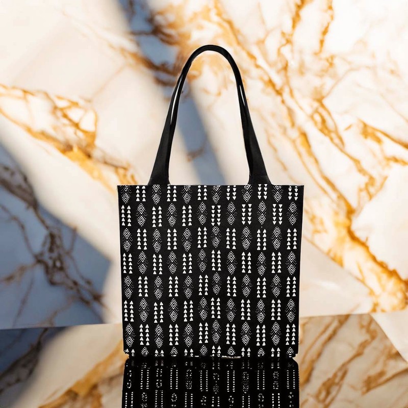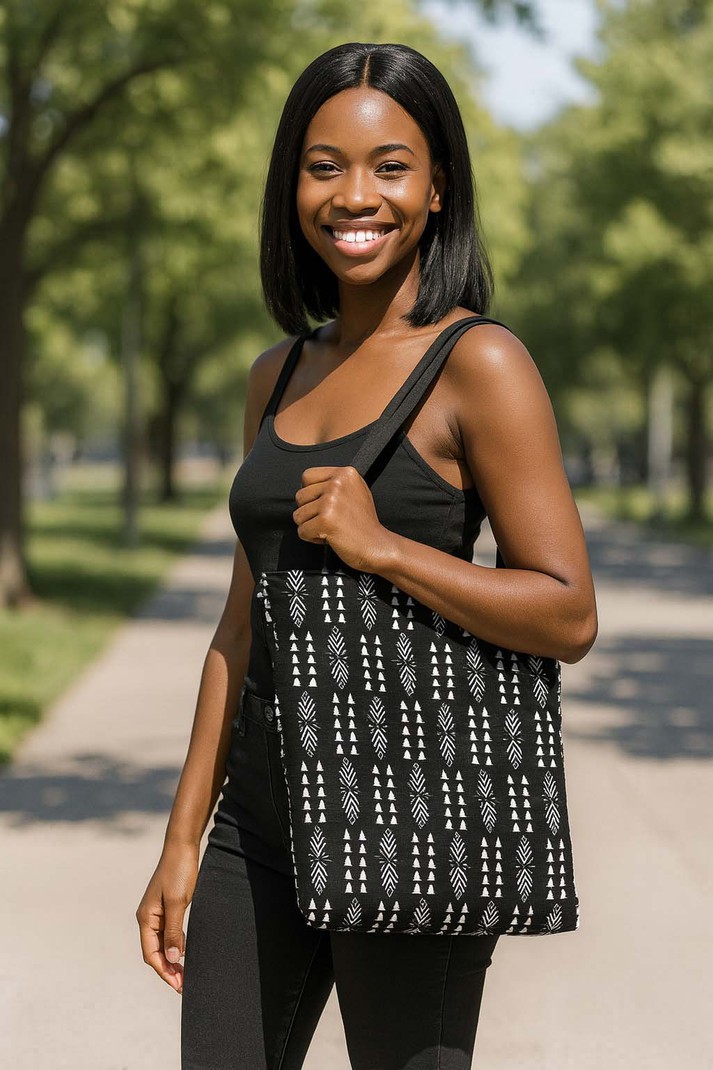 Get ready for adventure with our Tribal Tote Bag! Featuring a bold African print, this spacious accessory is perfect for all your travels. With its large capacity, you can carry all your essentials while staying fashion forward. Embrace your daring side and make a statement with this Afrocentric tote. Product Description • 510 g/m2. Made from high-grade canvas. • Durable and roomy enough for your daily items. • Lightweight canvas tote bag with sturdy handle is easy to carry. • Perfect for shopping and carrying your essentials. Delivery Time This item will be processed within 3-7 business days (Excluding Weekends and Holidays). Once products ships it can take up to 15 Business days depending on your location. Out of Stock items can be requested by emailing us at [email protected] Care Instructions Machine wash cold inside out. Gentle cycle with mild detergent and like colors. Do not use bleach or fabric softener. Do not tumble dry. Hang to dry to ensure maximum shelf life. Iron inside out if necessary. Do not iron the print. Do not dry clean.